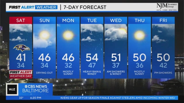 A storm system with a wintry mix of rain and snow is forecast for the area on Saturday, according to WJZ's First Alert Weather Team.