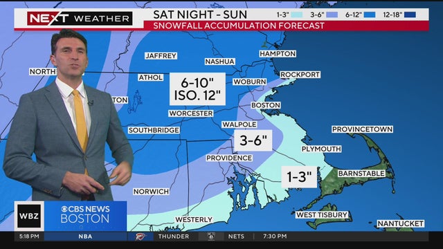 The highest snow totals will be located north and west of Boston in the Merrimack Valley and Worcester County.
